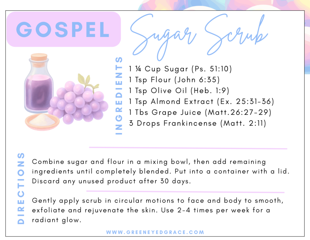 This is a great opportunity to share the gospel with some of your friends this Passover. You can make these pretty little sugar scrubs to witness to others. I am providing the PDF, which can be printed two to a page, if you want them smaller. Every time your friend uses this scrub, they will think of Jesus!